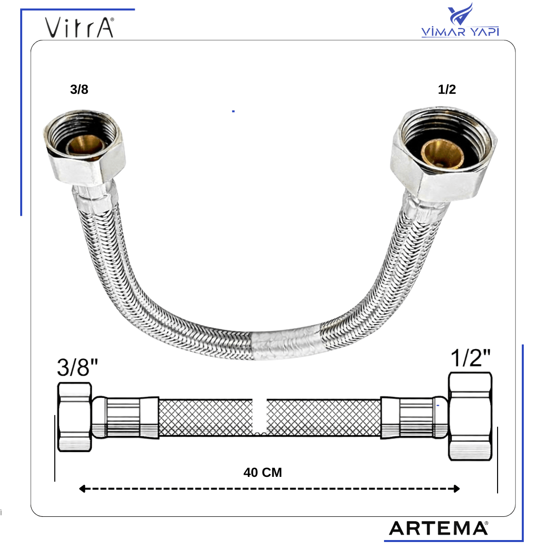 ÜRÜN ADI: 1/2″x3/8″ Çelik Örgülü Flex hortum 40cm |