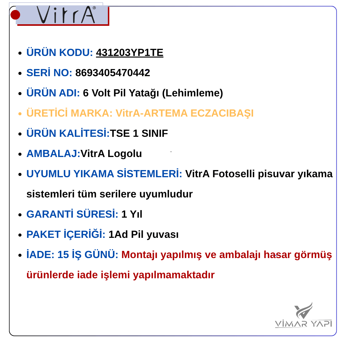 - AMBALAJ:VitrA Logolu n