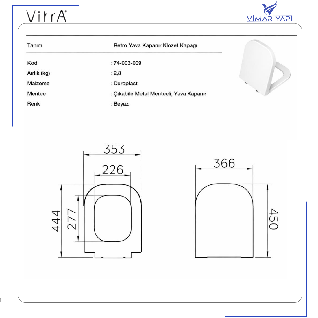 74-003-009 VitrA Retro Soft Close Klozet Kapağı Beyaz