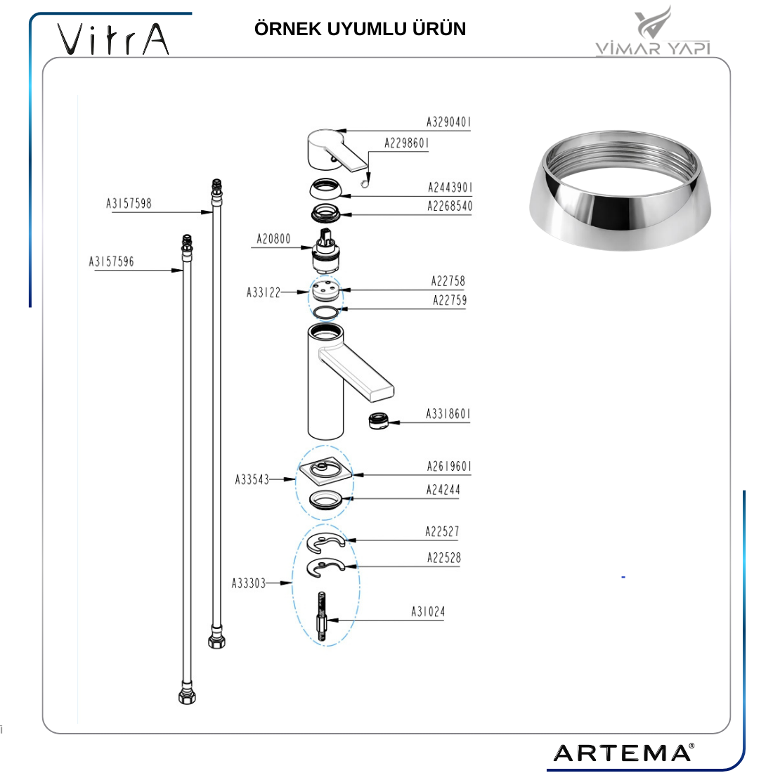 UYUMLULUK HAKKINDA: Lavabo + Eviye Bataryalarında Kartuşu gövdeye sabitleyen rekorun üzerine sıkılır |