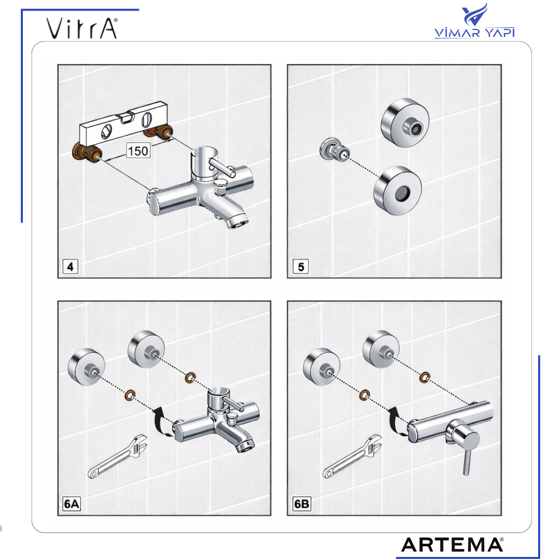 Uyarı Ve Genel Açıklamalar: Duvardan Banyo bataryası için duvar seramiği geniş açılması durumunda max 7,5 cm ölçüde kapatma olanığı sağlar |