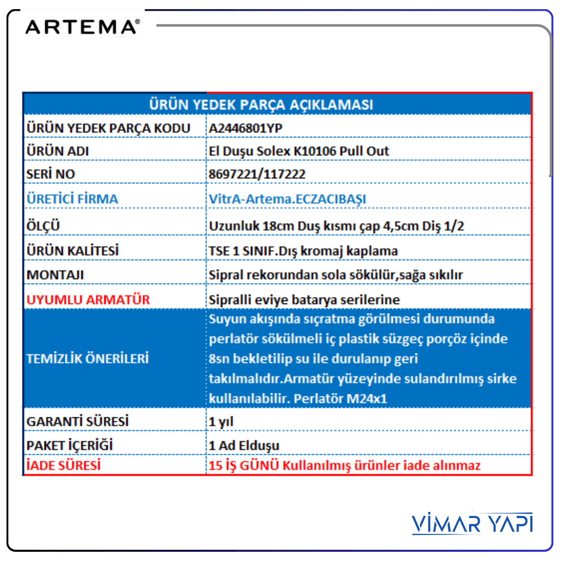 A2446801YP El Duşu SOLEX K10106 Pull-Out
