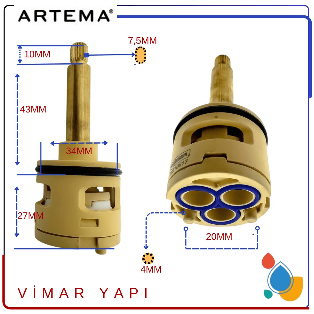 A25105YP 3 Yollu Yönlendirici Kartuşu Ankastre