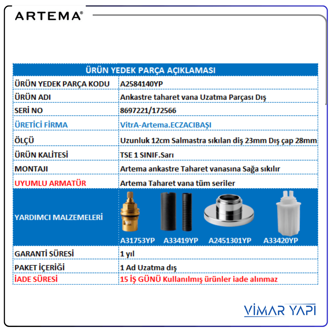 - AMBALAJ:2024 Yıl öncesi ARTEMA.2024 Yıl Sonrası VitrA logolu n