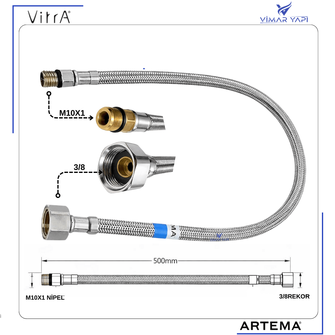 Bağlantı ölçüleri: 3/8″ x M10 |