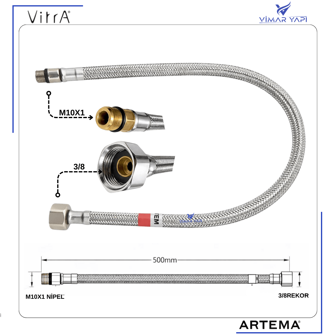 Bağlantı ölçüleri: 3/8″ x M10 |
