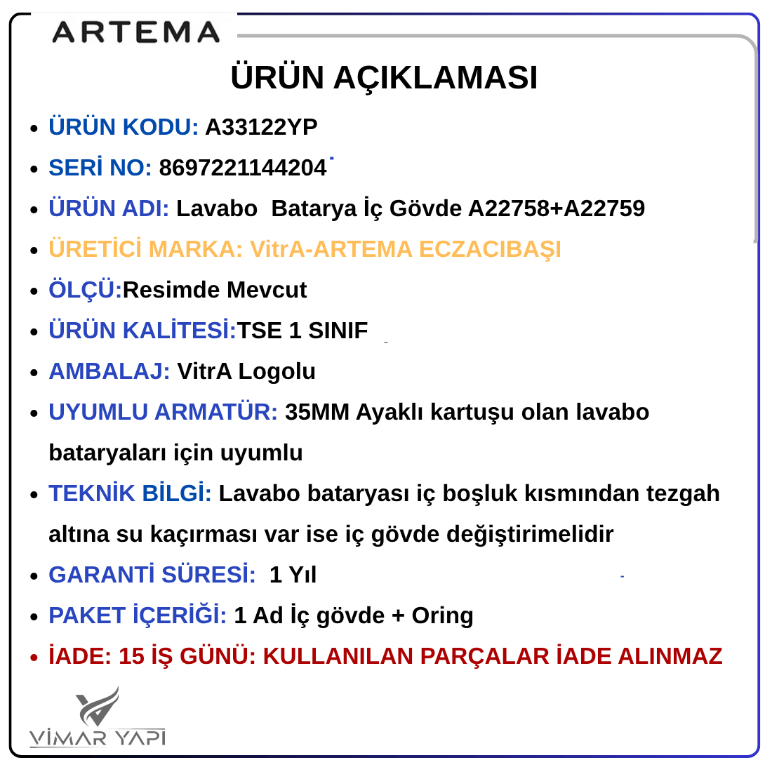A33122YP Gr. İç Gövde A22758+A22759