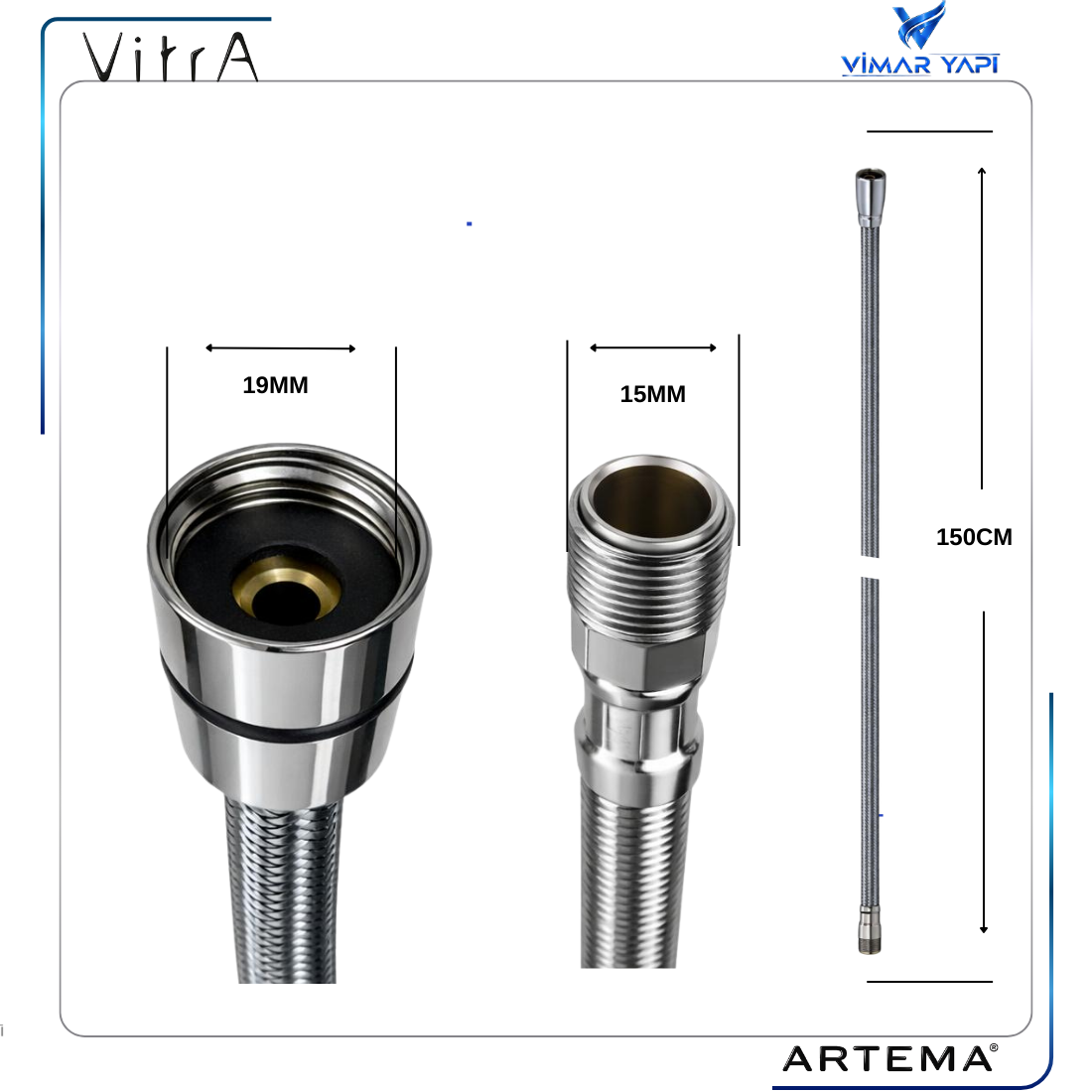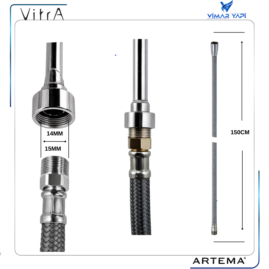 ÖLÇÜ: Sipral uzunluğu 150 Cm Duşa takılan diş ½ Batarya gövdesine sıkılan dıştan diş M15 |