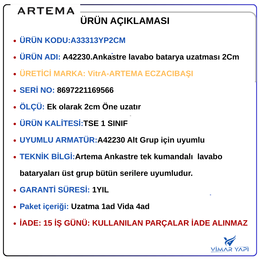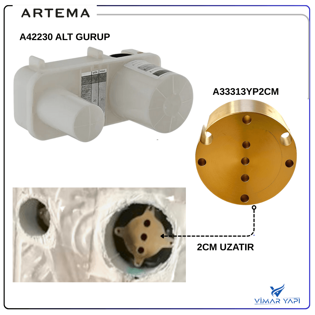 A33313YP 2cm Ankastre Lavabo batarya uzatması (2cm)