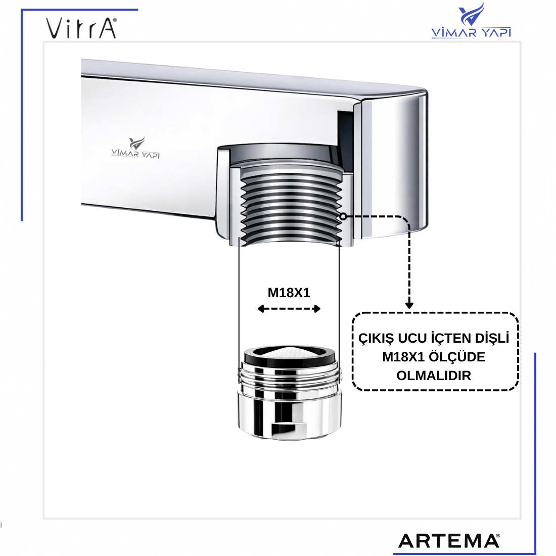 - UYUMLULUK HAKKINDA: Perlatörün sıkıldığı çıkış ucundaki diş içten dişli 18mm olmalıdır n
