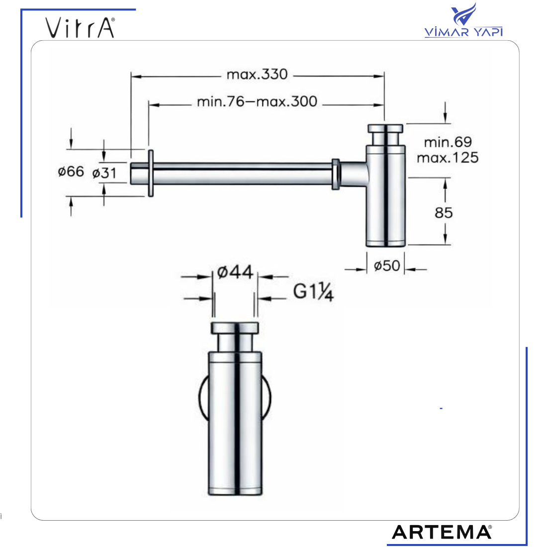 Uyarı Ve Genel Açıklamalar: G 1 1/4” girişlidir Lavabo sifon merkezi ile duvar arası min 76 max 290 |