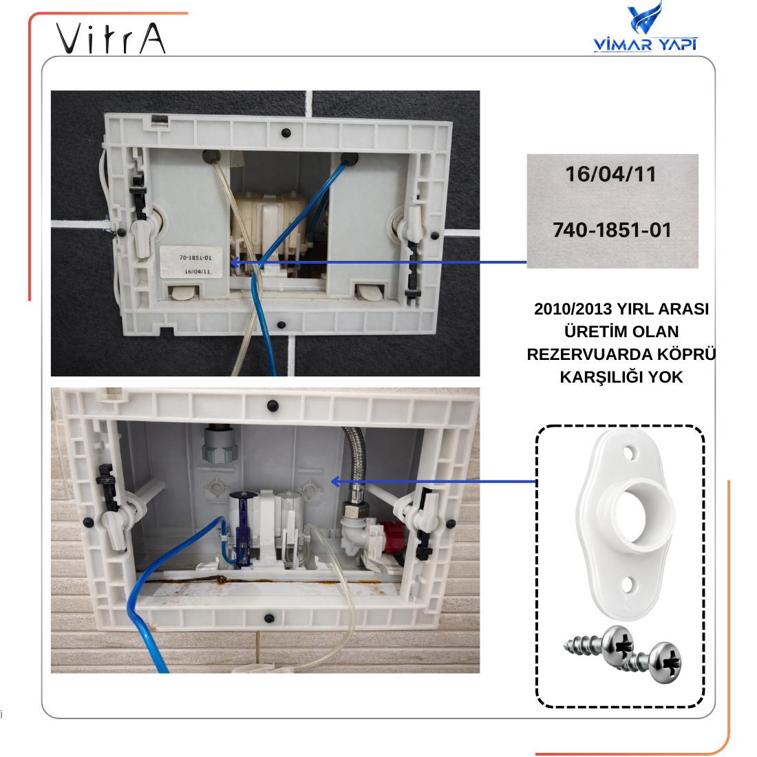 436462YP Köprünün karşılığı gömme rezervuarın gövdesinde mevcut Değil ise 436469YP Vida ile montajlanmalıdır.Detay resimlerde mevcuttur |