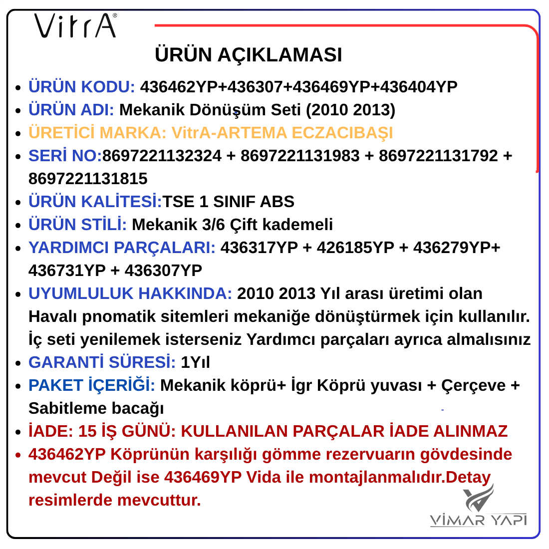 Mekanik Dönüşüm Seti (2010 2013)436462YP+436307+436469YP+436404YP